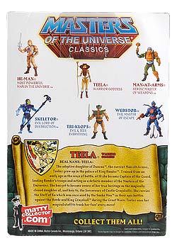 The adoptive daughter of Duncan™, the current Man-At-Arms®, Teela® grew up in the palace of King Randor™. Trained from an early age in the ways of battle, at age 18 she became Captain of the Guard, leading the troops of King Randor™ and acting as a defacto member of the Masters of the Universe®. She is yet to become aware of her true heritage as the magically cloned daughter of, and heir to, the Sorceress of Castle Grayskull®. She carries the Staff of Ka, which was once used by the Snake Men™ in their epic battles against the Horde and King Grayskull™ during the Great Wars. Teela® uses her magical staff to track her foes’ every move!