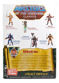 An ancient and powerful enforcer for the Council of Elders, Kar-tor™ studied the teachings and mystic fighting techniques of the Cosmic Enforcers and knows how to instantly identify an opponent’s weakness. After his mentor, the original Zodac®, left Eternia® to fulfill the Elder’s bargain with Trolla, Kar-tor™ took his place on the Council and helped lead them in battle against the Snake Men™, eventually trapping King Hssss™ in the Void with the power of his staff. Although he prefers a solitary life of meditation in the Mystic Mountains, when he is called to battle, Zodak™ attacks his enemies using all the power at his command!