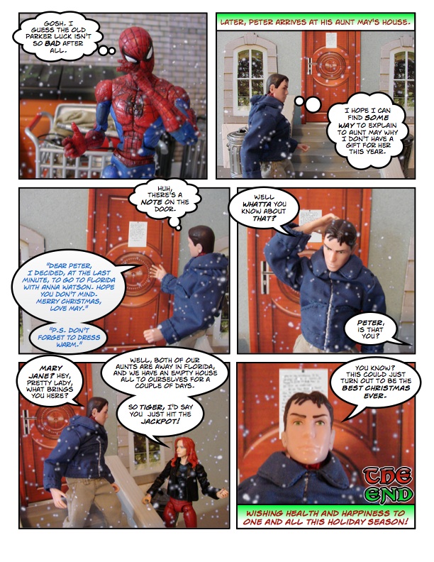 Bill has shared the second of two holiday-themed classic Action Figure Comics, this one starring the amazing Spider-Man. Be sure to check out The Dark Knight Before Christmas, starring Batman, and more of his comics at Bill’s Comics.