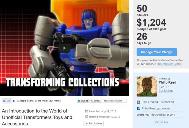 Faster than I could get a post up about it, in the past couple of days the Transforming Collections Toy Reference Book project on Kickstarter has exceeded its initial funding goal and will come to fruition. But Transformers fans, that doesn’t mean you shouldn’t jump on this bandwagon to produce a book featuring those third party add-ons and accessories that make your Transformers kick ass.