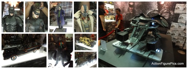 Here are the Hot Toys pictures of their Batman/The Dark Knight Rises figures. The highlights of this display were definitely the ginormous “The Bat” vehicle and TDKR Catwoman unveiled for the first time. There was also the exclusive SWAT Gordon, and a 14″ scale Ultimate Batman (he’s the one with the loads and loads of accessories). Also making an appearance were the 1989, 1966 and camo Tumbler versions of the Batmobile.