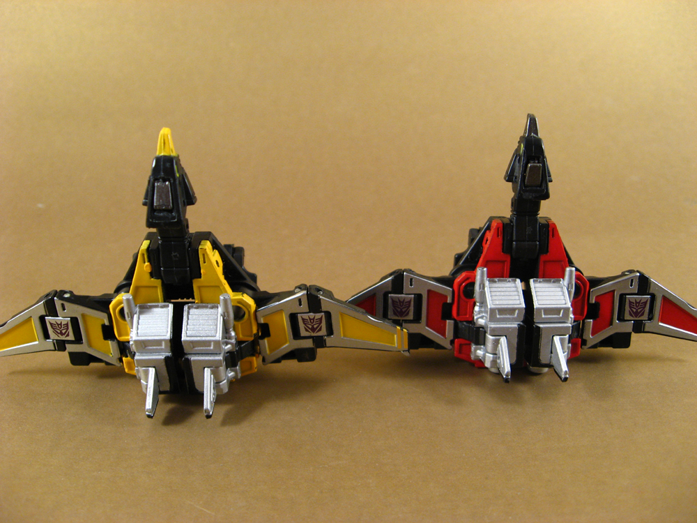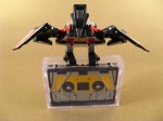 The most amazing thing about the Laserbeak/Buzzsaw mold is that it’s completely self contained. The original Laserbeak had gun/vent attachments on the top that were separate pieces, but this time around Takara managed to engineer them into the tape transformation. And they did this without increasing the site of the cassette mode. In fact, these Masterpiece cassettes are the exact same dimensions as the originals, making them compatible with your G1 Soundwave as well!