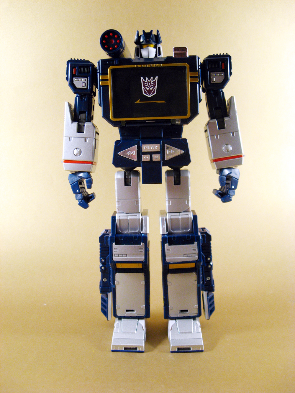 There are a lot of great hidden details in this figure, like the speakers sculpted into his forearm panels. And of course the ability to pose him touching the “eject” button on his chest is essential. The only joints on my Soundwave that gave me some trouble was the forward hip movement. The joints were so tight that when they eventually did start clicking, i thought i had instead snapped them off. They were insanely tight, so be careful of that. Soundwave measures up a little shorter than the recent MP-01 Optimus Prime released last year, which seems about the right height.