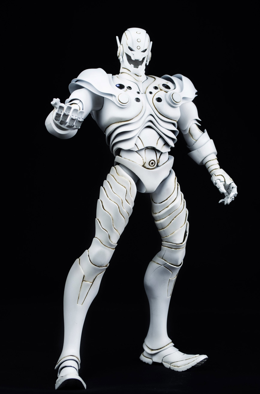 The 3A Toys Marvel Ultron is up for pre-order now at Bambaland in three colorways (classic, shadow, and ghost) for $220 each. These are shown with bluish white LEDs for the light-up function – 3A will send a red LED version upon request. After you’ve added Ultron to your shopping cart, there’ll be a message text box where you can enter a message to 3A’s customer service folks for your order.