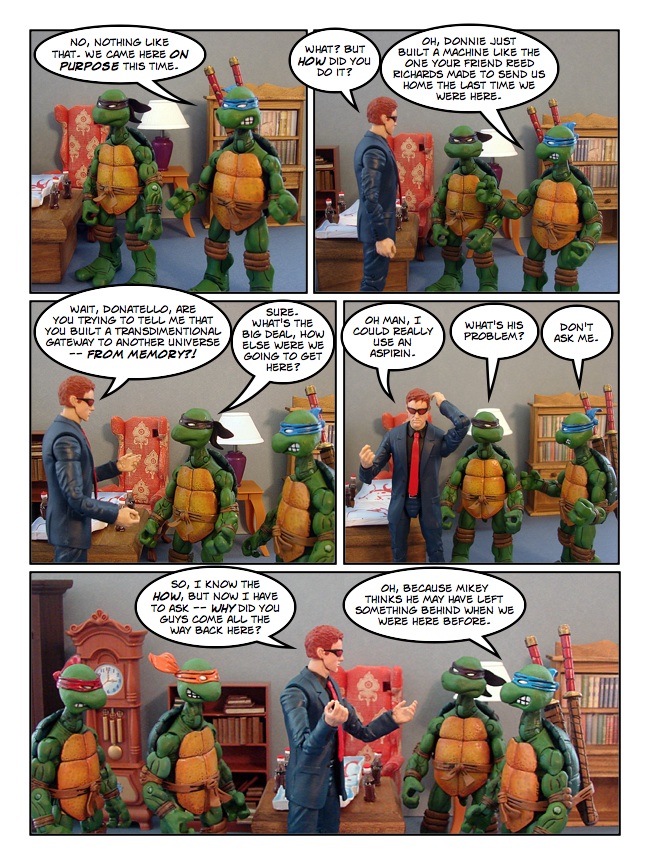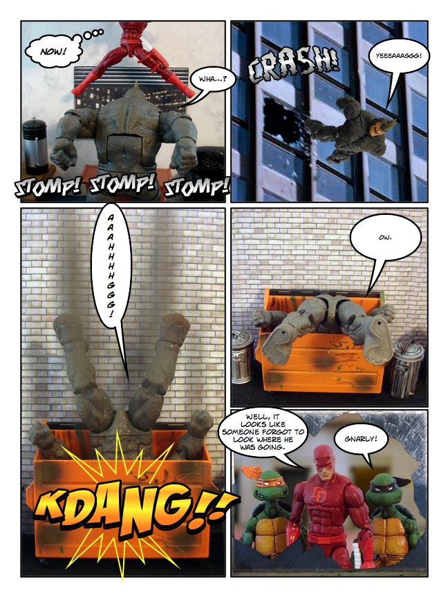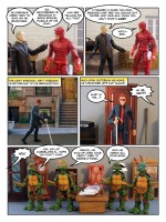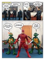 Bill is back with his latest action figure comic, a Daredevil story featuring the Teenage Mutant Ninja Turtles. (It’s the sequel to Daredevil Meet the TMNT!) With an assist from Iron Fist, these martial artists take on Silvermane, Hammerhead, and the Rhino. Also, don’t miss a cameo from a certain Dynamic Duo!
