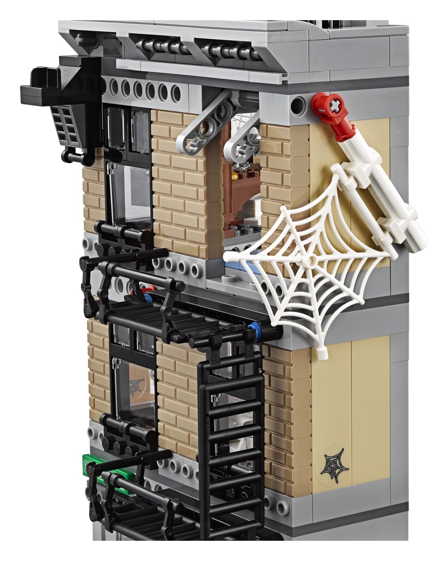 - This set features a 3-level New York City building including the Sanctum Sanctorum, pizzeria, Peter Parker’s apartment, 2 fire escapes, rooftop water tower, plus a detachable street corner scene.